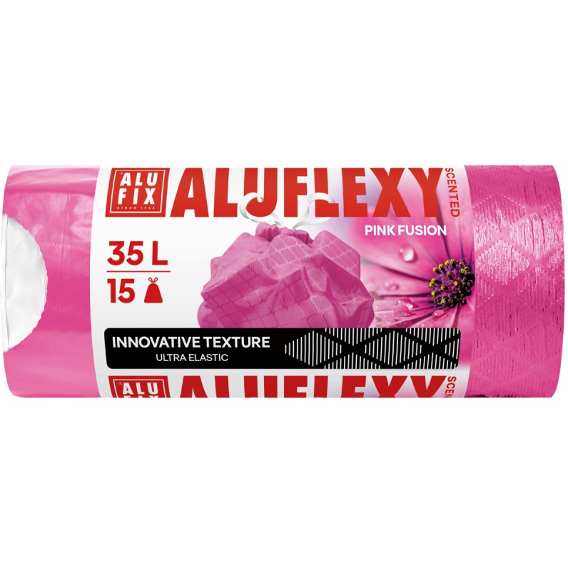 Worki na śmieci ALUFIX Aluflexy, zapach, LDPE, 35l, 15 szt., różowe