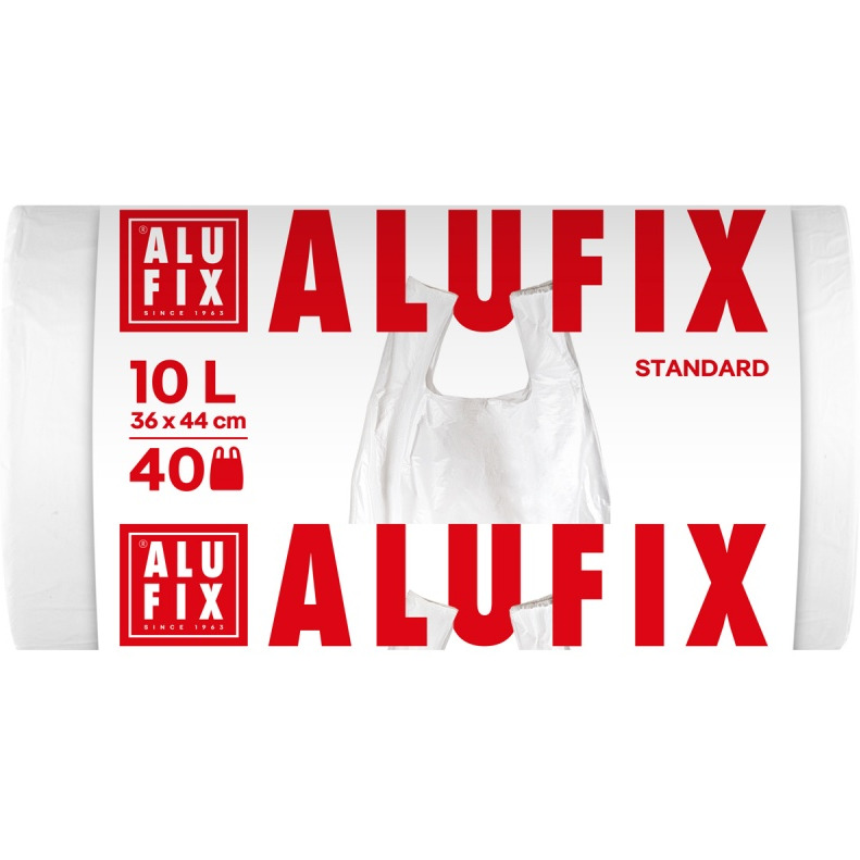 Worki na śmieci ALUFIX, z uszami, HDPE, 10l, 40 szt., białe