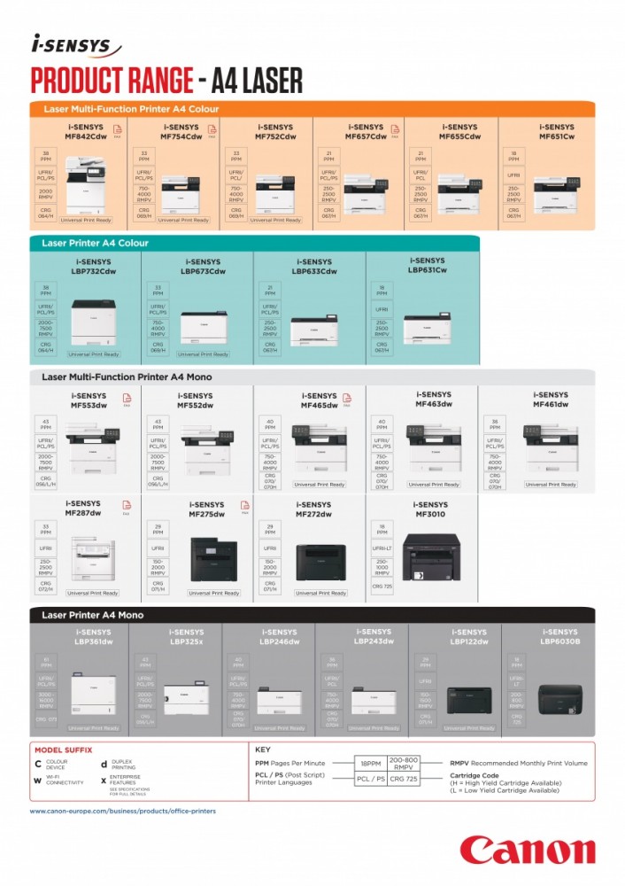 Zintegrowana, nadająca się do recyklingu kaseta pozwala ograniczyć czynności konserwacyjne i zapewnia stałą, wysoką jakość druku. Kaseta laserowa autoryzowana przez firmę Canon zawiera toner, bęben oraz elementy czyszczące i może zostać wymieniona w kilka sekund, nie powodując przy tym zabrudzeń.