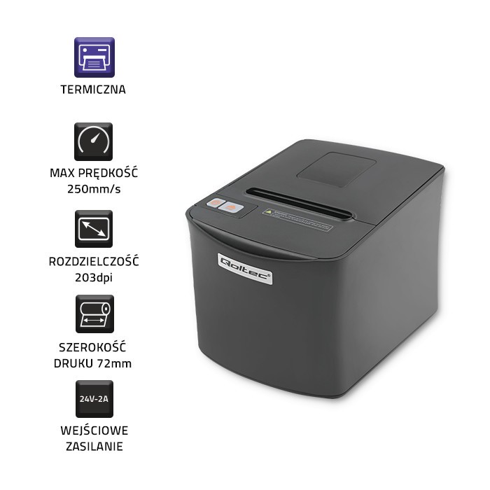 Drukarka paragonowa Qoltec to idealne rozwiązanie wszędzie tam, gdzie liczy się szybkość i precyzja wydruku dużej ilości paragonów. Dodatkowo nasz produkt oferuje: Maksymalną prędkość wydruku 250 mm/s, Sygnalizację statusu pracy dzięki wbudowanej diodzie LED, Złącze RJ-11, które umożliwi podłączenie szuflady do kasy fiskalnej Niskie koszty eksploatacyjne taśma do druku jest tania i łatwo dostępna Wbudowana gilotyna - obustronne nacięcie paragonu gwarantuje bezproblemowe oderwanie papieru nie uszkadzając wydruku
