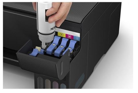 Urządzenie wielofunkcyjne Ecotank L3210 ITS kolor A4/33ppm/USB/3pl/BLPR/czarne Technologia druku Micro Piezo, szybkość drukowania: czerń10/ kolor 5 (ISO) Zmienna wielkość kropli 3 pikolitry, 4-kolorowy system ciągłego atramentu Epson Dye Drukowanie bez obramowania