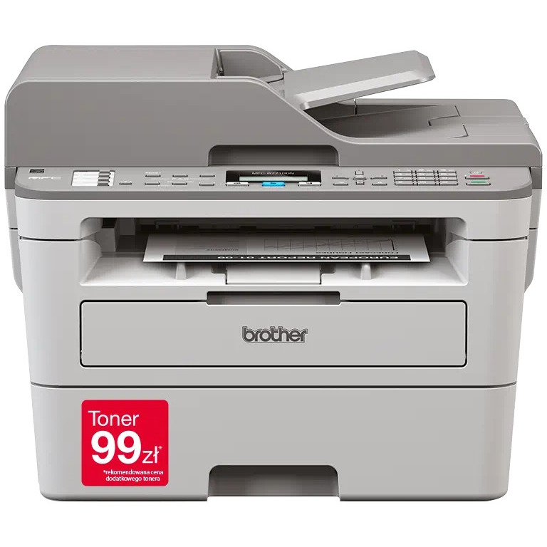 Model MFC-B7710DN jest dostarczany z tonerem o wydajności 2000 stron. Po rozpakowaniu urządzenie jest gotowe do pracy, a wysoka wydajność tonera znacznie obniża koszt drukowanej strony i zmniejsza częstotliwość wymiany materiałów eksploatacyjnych.
