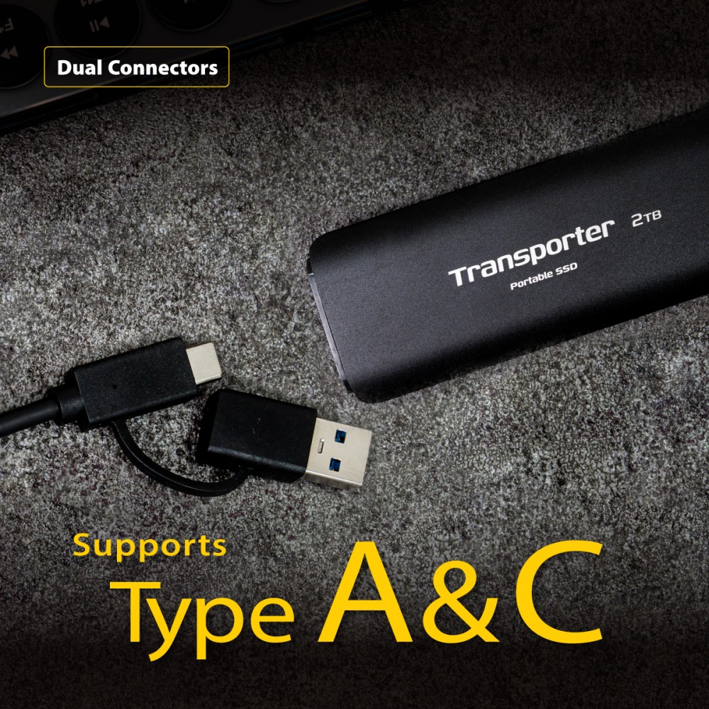 Zewnętrzny przenośny dysk SSD Transporter został zaprojektowany z myślą o wygodzie i dużej wydajności, idealnej dla profesjonalistów, twórców treści i entuzjastów gier. Dzięki łatwemu w użyciu interfejsowi, możliwościom plug-and-play i konstrukcji niewymagającej sterowników, przenośny dysk SSD Transporter jest dostępny dla każdego systemu i użytkownika. Przenośny dysk SSD Transporter oferuje kompatybilność z szybkim USB 3.2, wcześniejszymi wersjami USB oraz obsługę zarówno obecnych, jak i poprzednich systemów operacyjnych Windows i MacOS oraz podwójne połączenie typu C do typu A+C, co pozwala na naprawdę wszechstronne rozwiązanie pamięci masowej. Wydajność przenośnego dysku SSD Transporter jest dostosowana do każdego obciążenia, zapewniając wysoką prędkość odczytu sekwencyjnego do 1000 MB/s i prędkość zapisu do 1000 MB/s. Przenośny dysk SSD Transporter to idealne połączenie wszechstronności, spójności, wygody i wydajności.