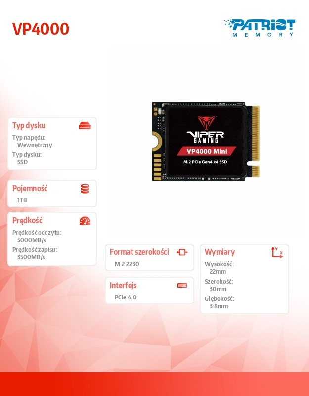 Dysk SSD 1TB VP4000 Mini M.2 2230 PCIe Gen4 x4 5000/3500MB/s