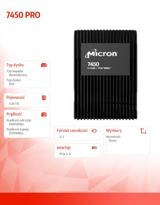 Dysk SSD 7450 PRO 3840GB NVMe U.3 15mm Single Pack