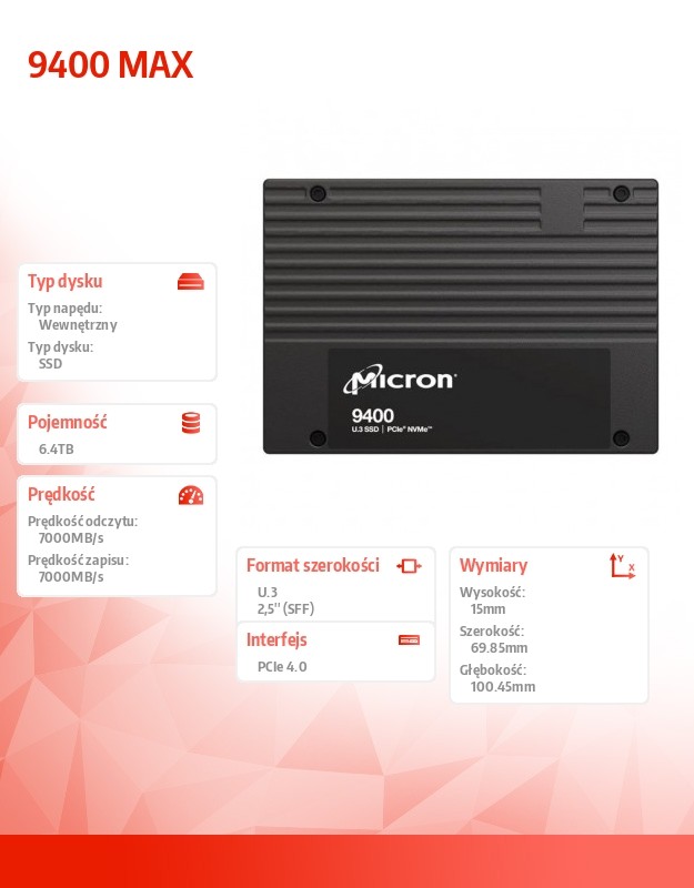 Dysk SSD 9400 MAX 6400GB NVMe U.3 15mm Single Pack