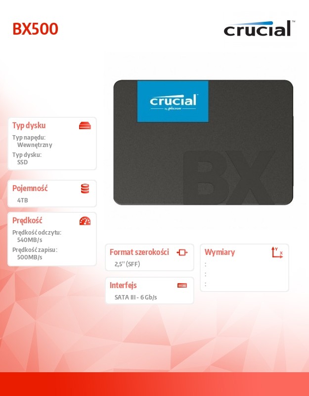 Producent: Crucial | Kod produktu: DGCRCWBT40BX500