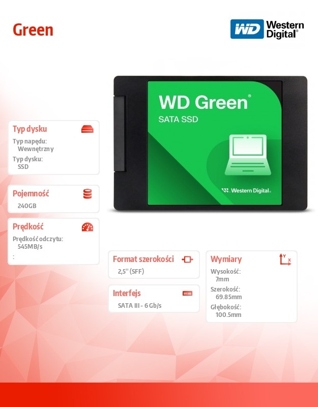 Dysk SSD Green 240GB SATA 2,5 cala WDS240G3G0A