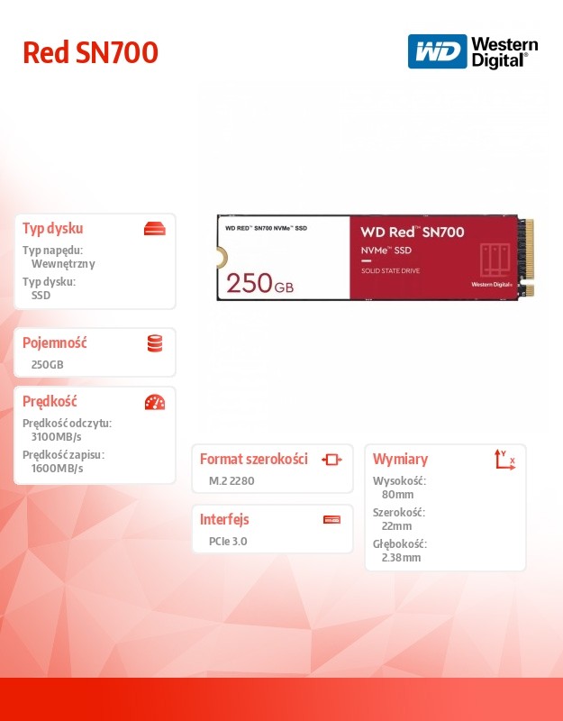 Dysk SSD Red 250GB SN700 2280 NVMe M.2 PCIe