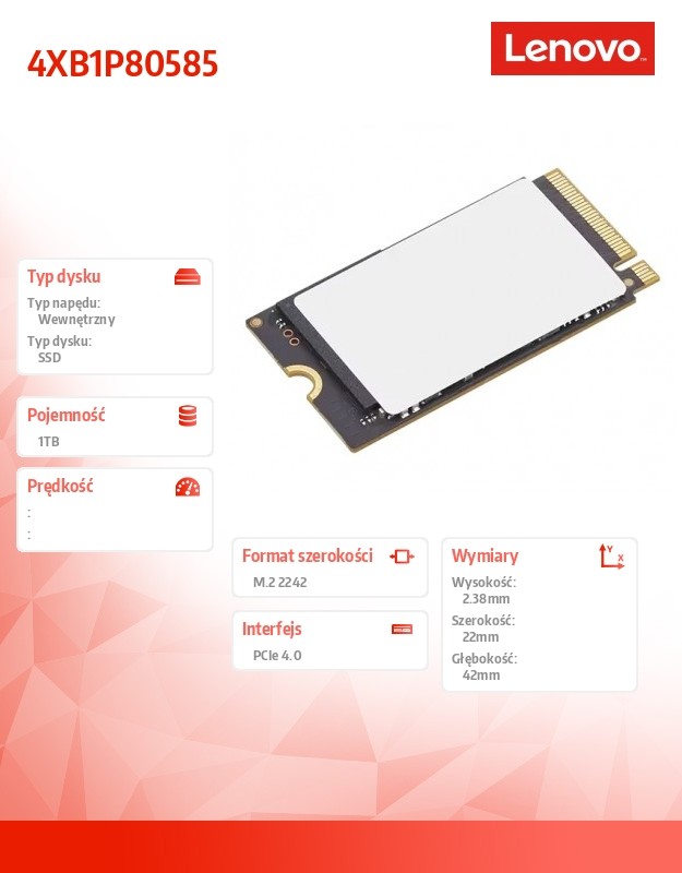 Dysk SSD wewnętrzny 1TB PCIe G4x4 2242 4XB1P80585