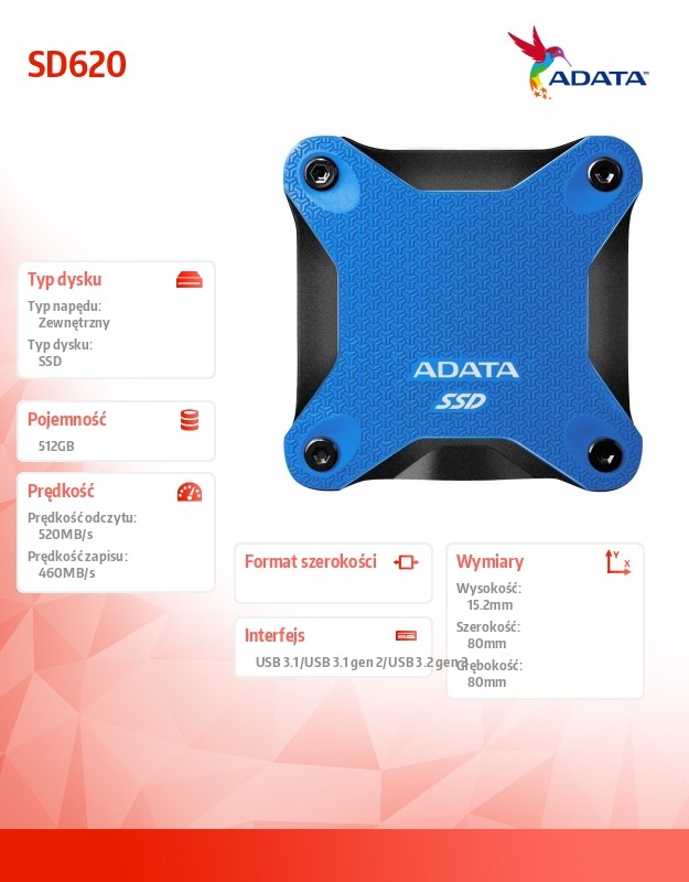 Pokochasz go od pierwszego użycia! Przy szybkościach transferu sięgających 520 MB/s dysk SD620 to koń...