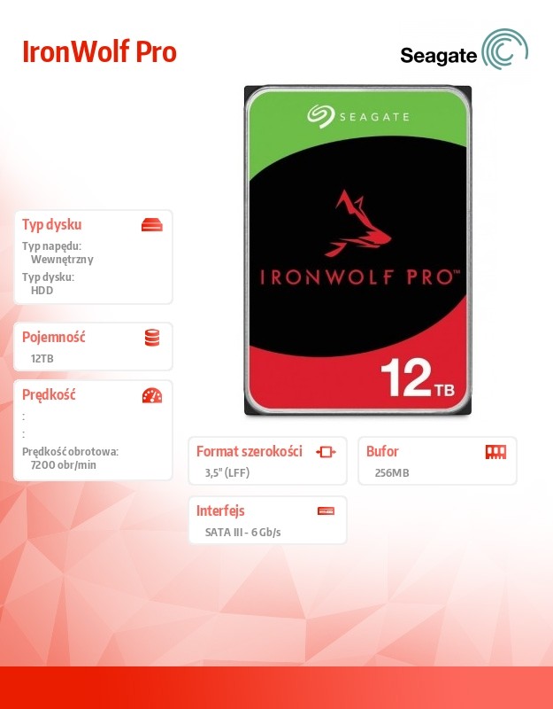 Dysk IronWolf Pro 12TB 3.5 256MB ST12000NT001