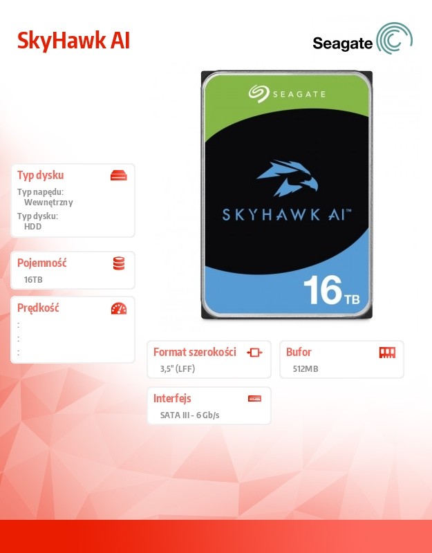 Dysk twardy SkyHawk AI 16TB 3,5 cali 512MB