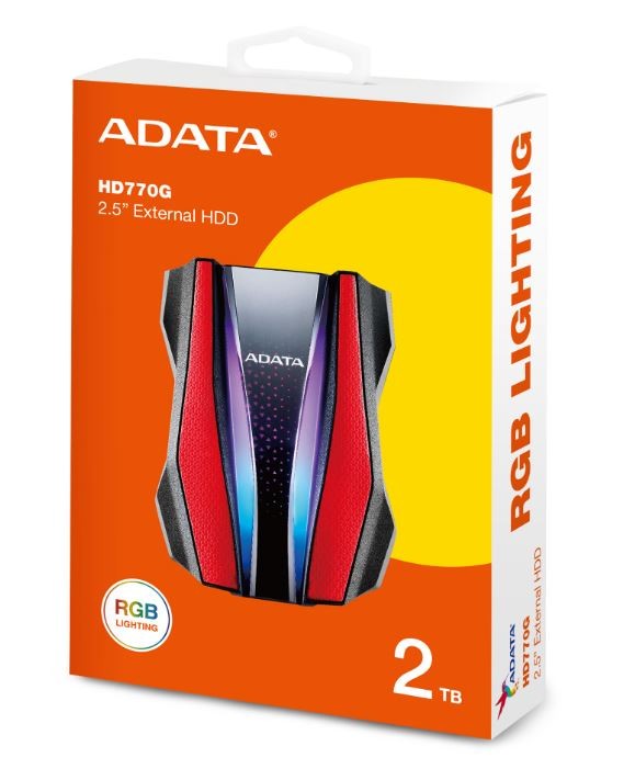 Konstrukcja dysku HD770G jest całkowicie odmienna od innych zewnętrznych dysków twardych dzięki przykuwającym uwagę ściętym krawędziom oraz dwóm paskom RGB w kształcie wiązek światła, które nadają mu charakter. Dodatkowo między dwoma paskami świetlnymi znajduje się główna ozdoba w postaci perforowanego wzoru, który ożywa wraz z pulsującym podświetleniem RGB.