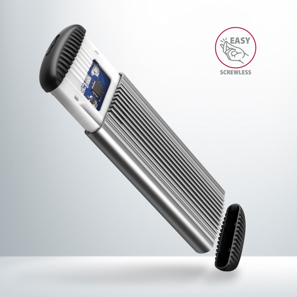 Bezśrubowe otwieranie obudowy ułatwia montaż i demontaż dysku SSD M.2. Wymiana dysków jest szybka i łatwa, co rozszerza możliwości wykorzystania skrzynki, np. do migracji danych, testowania, itp.