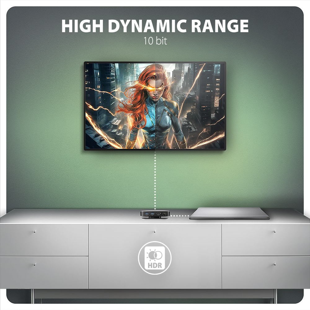 Wsparcie HDR (High dynamic range, obsługa 10 bitów) realistyczne odwzorowanie jasnych i ciemnych szczegółów.