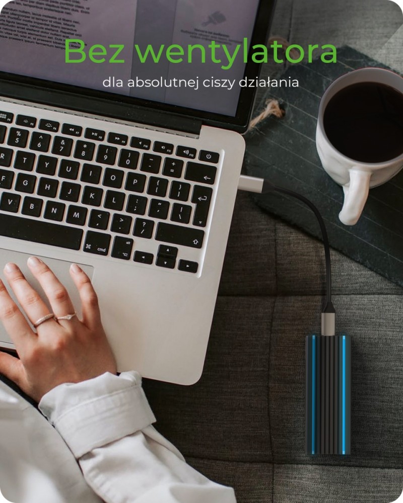 Obudowa USB Type-C dla dysku M.2 NVMe SSD z oświetleniem RGB Wysokiej jakości aluminiowa obudowa z innowacyjną konstrukcją żeber chłodzących Oświetlenie...
