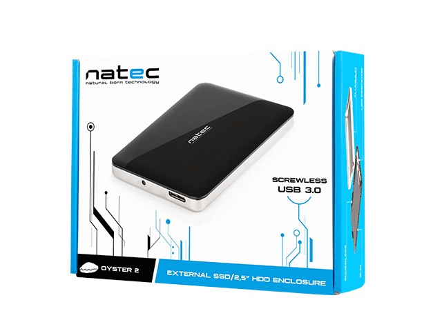 OYSTER 2 - zewnętrzna obudowa USB 3.0 na SSD/HDD 2.5'' SATA: Kompaktowy rozmiar i niski profil Bezśrubkowy montaż Bardzo dobre zabezpieczenie dysku i odprowadzanie ciepła przez aluminiową obudowę Szybki transfer plików (do 5 Gbps) Kompatybilna z Windows 10