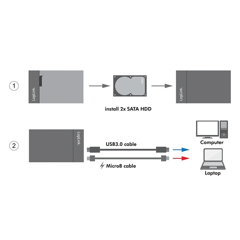 Pozostałe parametry: Zewnętrzna obudowa USB 3.0 HDD / SSD Kompatybilny z dyskami twardymi SATA do 2,5 "o wysokości 9,5 mm Obsługuje tryb RAID 0/1, JBOD / PM Max. Szybkość transferu: 5 Gb / s (USB 3.0) UASP, Hot Plug, Plug & Play Beznarzędziowy dla łatwej instalacji Bezpieczna blokada dysku twardego na obudowie Nie jest wymagana instalacja sterownika W tym Kabel USB 3.0 i kabel zasilający Micro-B