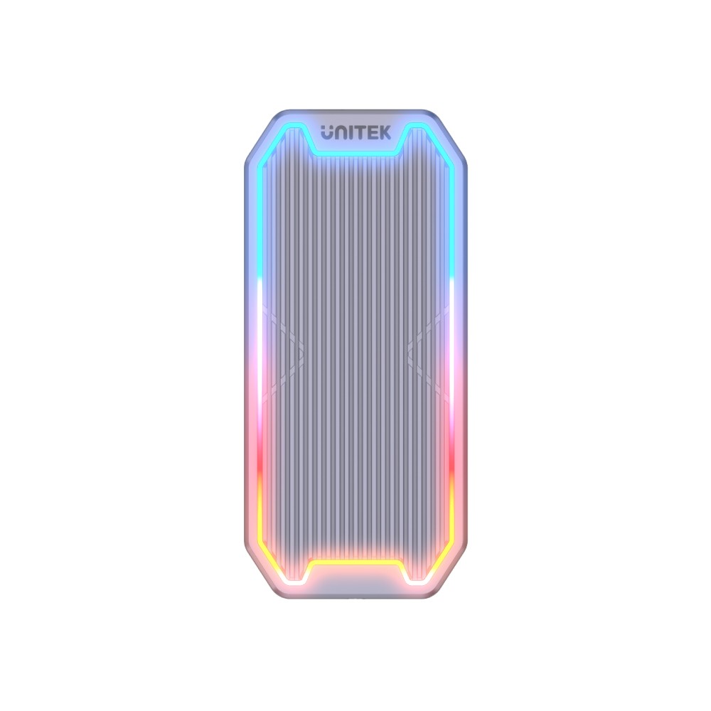 Obudowa M.2 SSD z kolorową diodą LED RGB stworzona z myślą o graczach. Obsługuje transfer danych USB3.2 Gen2 10Gbps SuperSpeed i jest kompatybilna ze wszystkimi typami M.2 SSD, w tym PCIe/NVMe oraz SATA/AHCI (42mm / 60mm / 80mm).