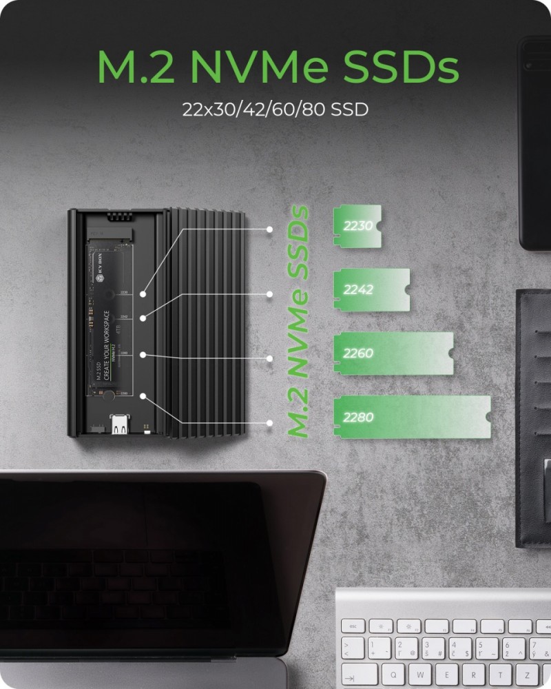 Obudowa na 1x dysk SSD M.2 NVMe z USB 3.2 Gen 2x2 Type-C Najwyższa wydajność dzięki USB Type-C: Dzięki USB 3.2 Gen 2x2 i portowi USB Type-C,...