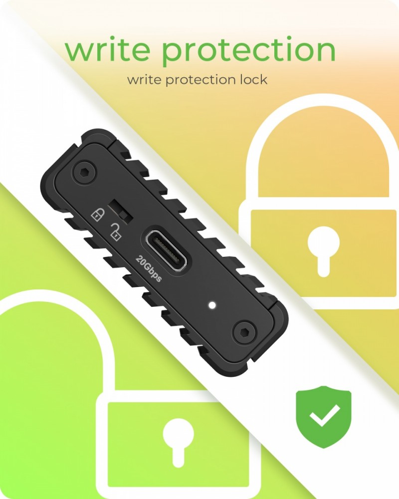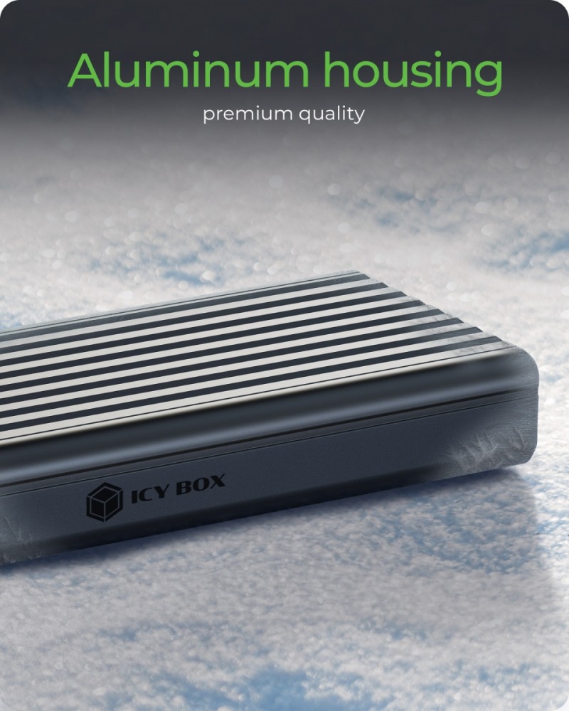 Obudowa na 1x dysk SSD M.2 NVMe z USB 3.2 Gen 2x2 Type-C Najwyższa wydajność dzięki USB Type-C: Dzięki USB 3.2 Gen 2x2 i portowi USB Type-C, IB-1917M-C32 oferuje imponującą szybkość przesyłania danych do 20 Gbit/s, co odpowiada około 2,5 GB na sekundę Optymalne odprowadzanie ciepła: Aluminiowa obudowa jest wyposażona w żebra chłodzące i dzięki szczególnie dużej powierzchni zapewnia kompaktową konstrukcję i efektywne odprowadzanie ciepła z dysku SSD M.2 Uniwersalna kompatybilność: w obudowie mieszczą się dyski SSD M.2 NVMe o długościach 30/42/60 lub 80 mm. Zapewnia to natychmiastowe usprawnienie pracy w smukłej obudowie Łatwa instalacja: Instalacja dysku SSD jest łatwa. Po odkręceniu połączenia śrubowego na pokrywie obudowy montaż dysku SSD odbywa się bez śrub i narzędzi. Zamknij ponownie pokrywę i rozpocznij pracę Ultrakompaktowa konstrukcja: IB-1917M-C32 jest lekki, kompaktowy i dlatego szczególnie nadaje się do zastosowań mobilnych. Dzięki temu zawsze masz swoje pliki pod ręką