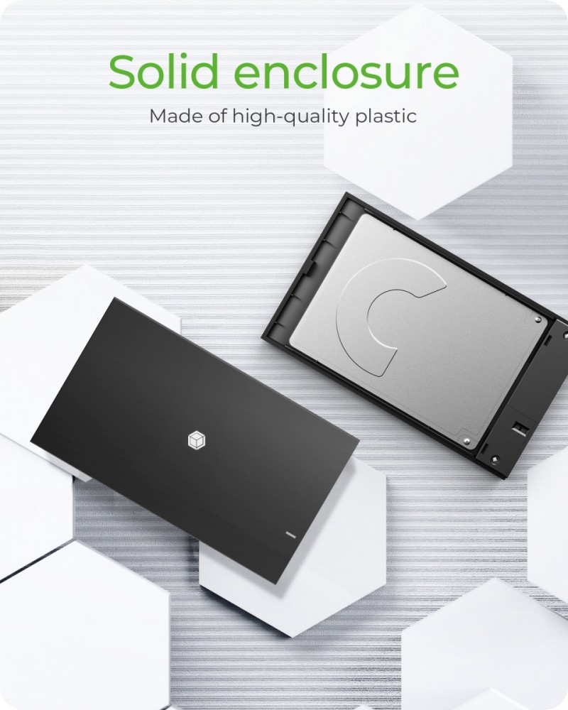 Obudowa na 1x SSD/HDD z kablem combi USB 3.2 Gen 1 Type-A/Type-C IB-200T-C3 Obudowa SSD 2,5'': Z USB Type-C i USB Type-A dostępne są dwie opcje połączenia z obudową dzięki dostarczonemu kablowi kombi. W zależności od komputera hosta można użyć jednego lub drugiego złącza USB Wysoka kompatybilność: Niezależnie od tego, czy Twój komputer działa w systemie Windows, macOS czy Chrome OS, IB-200T-C3 automatycznie dostosowuje się do każdego systemu operacyjnego i zawsze okazuje się niezawodnym towarzyszem 100% bez narzędzi: Dzięki IB-200T-C3 instalacja lub wymiana dysku twardego jest super szybka i super łatwa: otwórz pokrywę, włóż dysk, ponownie zamknij pokrywę i to wszystko Dla 2,5-calowych dysków SATA I/II/III: Pod warunkiem, że 2,5-calowe dyski twarde lub dyski SSD SATA I/II/III nie przekraczają maksymalnej wysokości 9,5 mm, wszystkie te nośniki danych można umieścić w IB-200T-C3 i może być natychmiast użyty USB 3.2 Gen 1: Gwarantowany płynny transfer danych: wystarczy zadokować do odpowiedniego złącza USB Type-C lub Type-A i rozpocząć pracę oraz przesyłanie danych z szybkością 5 Gbit/s