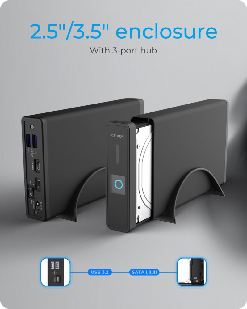 Obudowa IB-382H-C31 2,5/3,5 HDD z wbudowanym HUB 1xUSB-C, 2xUSB -A, 12V2A