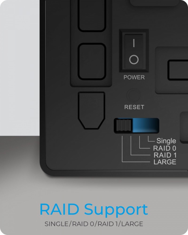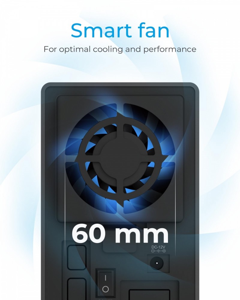 Dla 2x 3,5-calowych dysków SATA I, II, III (6 Gb / s), pojemność dysków jest nieograniczona Obsługuje RAID 0/1 / LARGE / SINGLE, automatyczne przebudowywanie. Wskaźniki LED pokazują stan systemu i błędy napędu Interfejs hosta USB 3.1 (Gen 2) z prędkością do 10 Gbit/s EasySwap - wymiana dysku twardego bez narzędzi. Wentylator 60 mm dla optymalnego chłodzenia i wydajności. Zamykane drzwi przednie Plug & Play i HotSwap