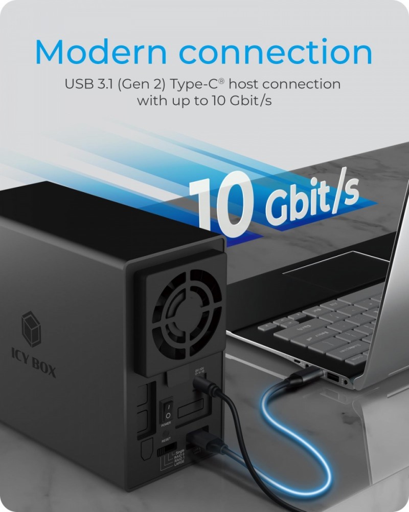 Obudowa IB-RD3802-C31 RAID 2xSATA HDD na 1xUSB 3.1 Gen 2Type-C, RAID 0,1