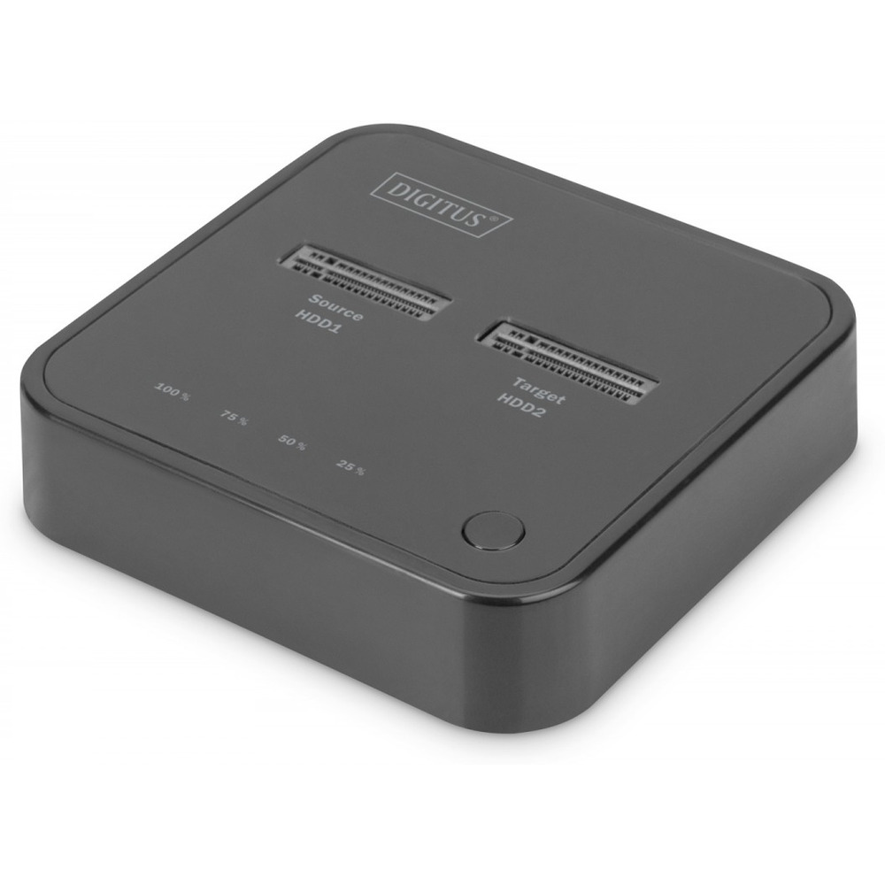 Podwójna stacja dokująca NVMe DIGITUS do dysków SSD M.2 o pojemności do 4 TB na każde gniazdo. Zarządzaj łącznie 2 dyskami SSD o różnych formatach, o pojemności łącznej do 8 TB. Dzięki zintegrowanej funkcji klonowania offline można również kopiować pamięci bez podłączonego urządzenia końcowego, za naciśnięciem przycisku. Postęp kopiowania sygnalizowany jest przez wskaźniki LED na urządzeniu. Obsługiwane są dyski SSD M-Key i B&M-Key NVMe w popularnych formatach 2242, 2260, 2280 i 22110. Powiększ w prosty sposób pojemność pamięci licznych urządzeń USB-C, takich jak komputery, notebooki, sprzęt TV, konsole czy routery. 2 x gniazdo M.2 dysku SSD NVMe po maks. 4 TB Funkcja klonowania offline za naciśnięciem przycisku (możliwe bez PC) Możliwość wykorzystania jako pamięci o łącznej pojemności do 8 TB Obsługiwane formaty: Dyski SSD 2242, 2260, 2280 & 22110 / M-Key, B & M-Key (NVMe) Idealne rozszerzenie pamięci do notebooków, PC, konsoli, sprzętu TV, NAS oraz roouterów (USB-C) Systemy: Windows 10/8/8.1/7/XP, macOS 10.0 lub nowszy Wskaźniki LED postępu kopiowania (25%, 50%, 75%, 100%) Dziedziny zastosowań: PC, notebook, TV, router lub konsole do gier (ze złączem USB-C) Formaty zapisu danych: NTFS, FAT, FAT32