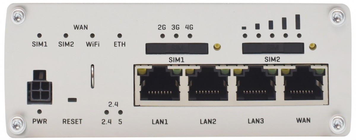 Pozostałe parametry: Obsługa sieci: Mobile 4G/LTE (Cat 6), 3G CPU: Qualcomm, 4 x ARM Cortex A7, 717 MHz Pamięć: 256 MB Flash, 256 MB RAM GNSS: GPS, GLONASS, BeiDou, Galileo, QZSS Bluetooth: 4.0 BLE Sygnalizacja LED: 4 x WAN, 2 x rodzaj sieci , 5 x siła sygnału, 2 x WiFi, 8 x Ethernet, zasilanie Obudowa: Aluminiowa z możliwością montażu na szynie DIN z możliwością uziemienia