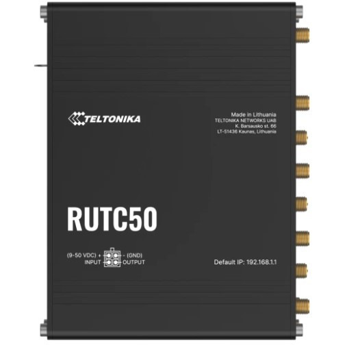 RUTC50 to router 5G wyposażony w technologię Wi-Fi 6 działającą w dwóch pasmach oraz obsługujący multi-user MIMO, co zapewnia ultraszybkie prędkości komórkowe do 3,4 Gbps. Router ten posiada również podwójne karty SIM z automatycznym przełączaniem awaryjnym (auto-failover), pięć gigabitowych portów Ethernet oraz GNSS dla precyzyjnego śledzenia lokalizacji. RUTC50 obsługuje zarówno architekturę SA, jak i NSA 5G, a także jest kompatybilny wstecznie z sieciami 4G (Cat 20) i 3G, zapewniając solidną i niezawodną wydajność.
