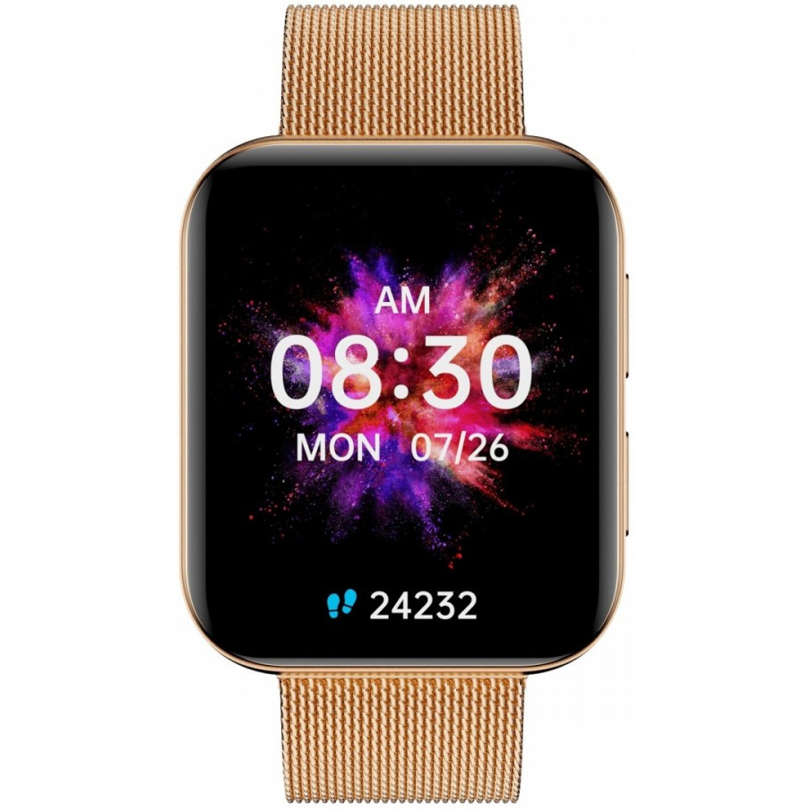 Funkcje: Wodoodporność IP68 Przystosowany do pływania Dotykowy ekran Podświetlany ekran GPS Bluetooth Kompatybilność z Android Kompatybilność z iOS Aplikacja z opcją GPS Powiadomienia wibracyjne Powiadomienia o wiadomościach SMS Powiadomienia o połączeniach Powiadomienia z aplikacji Odbieranie, odrzucanie, wykonywanie połączeń Klawiatura wybierania numerów Wykonywanie zdjęć telefonem Sterowanie odtwarzaniem muzyki z telefonu Funkcja szukania telefonu Funkcja szukania urządzenia Alarm rozładowania Pulsometr Ciśnieniomierz Pulsoksymetr Tryby sportowe Rodzaj trybów sportowych: 100 Trybów m. in.: Bieganie, Bieżnia, Trampolina, Joga, Koszykówka, Piłka nożna, Badminton, Maraton, Jazda na rolkach, Hula-hop, Golf, Baseball, Taniec, Pilates, Sztuki walki Krokomierz Monitor braku aktywności Przypomnienia o nawodnieniu Monitor snu Informacje pogodowe Wybudzenie ekranu ruchem ręki Odtworzenie pokonanej trasy Odtwarzacz muzyczny Stoper Minutnik Budzik Różne tarcze do wyboru Metalowy pasek Pasek wymienny Dedykowana aplikacja: Smart-Time Pro