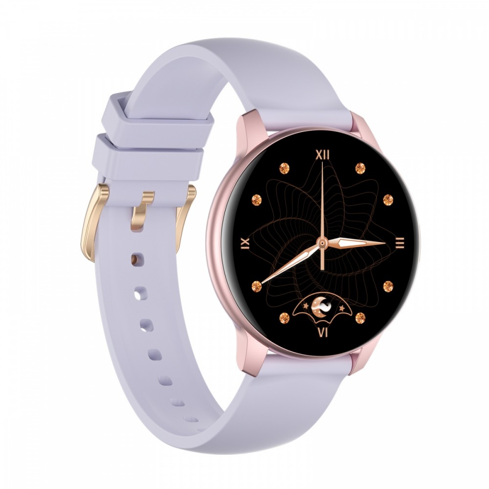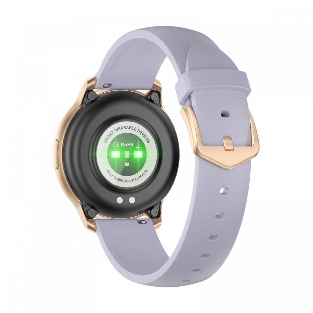 Funkcje: Krokomierz: Rejestrowanie dziennej liczby kroków, kalorii i dystansu; szczegółowe dane z historii można wyświetlić w aplikacji. Monitor tętna: Monitorowanie tętna w czasie rzeczywistym przez 24 h. Wartości dzienne i dane z historii można przeglądać w aplikacji Zawartość tlenu we krwi: Monitorowanie zawartości tlenu we krwi. Wartości dzienne i dane z historii można przeglądać w aplikacji. UWAGA: Pomiary są orientacyjne, nie służą do celów medycznych Ciśnienie krwi: Ciśnieniomierz. Wartości dzienne i dane z historii można przeglądać w aplikacji. UWAGA: Pomiary są orientacyjne, nie służą do celów medycznych Tryby sportowe: chodzenie, bieganie, jazda na rowerze, wspinaczka, joga, skakanie, badminton, rower stacjonarny, przysiady. Wartości dzienne i dane z historii można przeglądać w aplikacji. Powiadomienia: Mogą być wysyłane różne powiadomienia z telefonów komórkowych. Można zachować do 8 powiadomień. Monitor snu: Rejestrowanie czasu i jakości snu. Wartości dzienne i dane z historii można przeglądać w aplikacji Zdalne sterowanie odtwarzaniem muzyki: Zdalne sterowanie odtwarzaczem muzycznym w telefonie komórkowym, pauza/poprzedni lub następny Stoper: odmierzanie czasu Ustawienia: Regulacja jasności/ Kod QR do pobrania aplikacji/ Znajdź telefon komórkowy/ Informacje o zegarku/ Przywracanie ustawień fabrycznych/ Wyłączanie Przypomnienie o cyklu menstruacyjnym: Na stronie informacji osobistych w aplikacji należy ustawić płeć kobieta i włączyć funkcję cyklu menstruacyjnego. Dopiero wtedy ta funkcja pojawi się w menu zegarka. Zegarek będzie wyświetlać przypomnienia o dniach płodnych i niepłodnych, okresie menstruacyjnym i owulacji. POZOSTAŁE FUNKCJE Budzik, Przypomnienie o ruchu, Zdalne sterowanie kamerą, Powiadomienie o niskim poziomie baterii, Powiadomienie o połączeniu, Znajdź smartwatch, Dostosowywanie tarczy zegarka, Format czasu 12 H/24 H, Format jednostki km/mile, Ustawianie języka, Ilości spalonych kalorii, Dzienny cel długości snu, Funkcja znajdź smartwatch, Powiadomienia telefoniczne, Powiadomienia SMS, Funkcja nie przeszkadzać, Powiadomienia z aplikacji społecznościowych: Mail, Skype, Facebook Messenger, Budzik / Alarm / Stoper, Przypomnienie o spotkaniu, Przypomnienie o lekarstwach, Przypomnienie o nawodnieniu