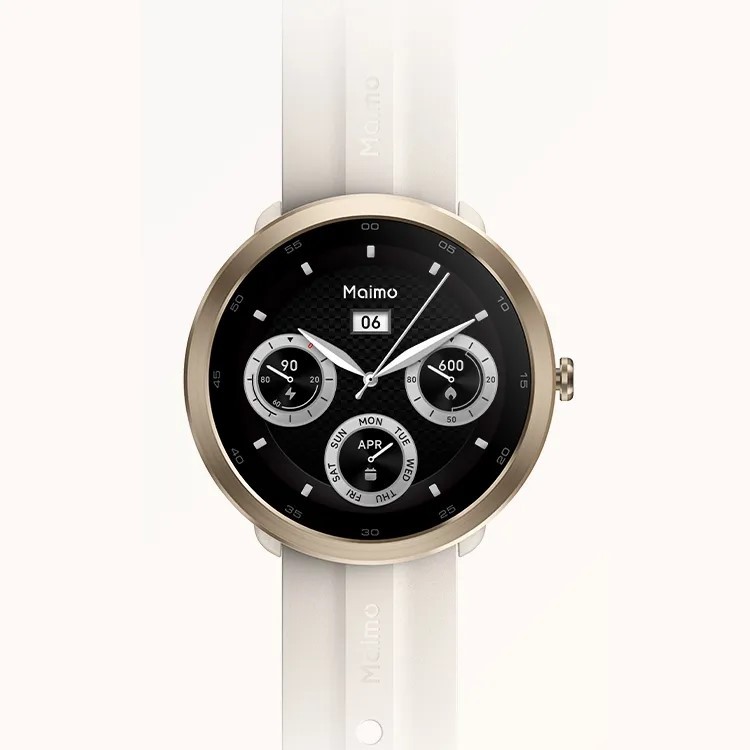 Smartwatch Maimo Watch R został wyposażony w dotykowy 1,3 calowy wyświetlacz LCD. Rozdzielczość 360x360 px zapewnia znakomitą jakość obrazu, a każdy szczegół na ekranie jest wyraźny i czytelny pod każdym kątem. Tarcza zegarka Maimo Watch R została wykonana z stali nierdzewnej i zakrzywionego szkła 3D odpornego na uszkodzenia, która płynnie łączy się z paskiem dodając klasycznego szyku. Obudowa zegarka Maimo Watch R wykonana z wysokiej jakości wytrzymałego materiału: poliamidu wzmocnionego włóknem szklanym, który zwiększa odporność na zarysowania i działa antyalergicznie.