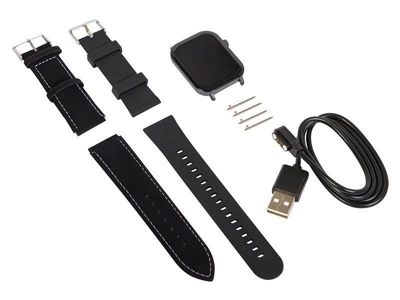 Akcesoria w zestawie: Smartwatch X18 2 x Pasek (czarny gumowy, czarny zamszowy) Kabel do ładowania Instrukcja obsługi w języku polskim i angielskim Opakowanie