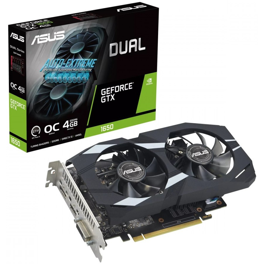 Karta ASUS Dual GeForce GTX 1650 OC Edition z 4 GB GDDR6 EVO zapewnia wysoką częstotliwość odświeżania w wysokiej rozdzielczości Karta ASUS Dual GeForce GTX 1650 wykorzystuje przełomową wydajność graficzną wielokrotnie nagradzanej architektury NVIDIA TuringTM, która zapewnia doładowanie Twoich ulubionych gier Ultraszybka pamięć GDDR6 z ponad 50% większą przepustowością pamięci do szybkich gier GeForce Experience umożliwia przechwytywanie i udostępnianie filmów, zrzutów ekranu i transmisji na żywo znajomym, aktualizowanie sterowników GeForce i łatwą optymalizację ustawień w grach Wersja OC: Taktowanie Boost 1785 MHz (tryb OC)/ 1755 MHz (tryb domyślny) Odporność na kurz IP5X zapewnia ochronę przed wnikaniem cząstek, co zapewnia większą trwałość Technologia Auto-Extreme wykorzystuje automatyzację w celu zwiększenia niezawodności 144-godzinny program weryfikacji poddaje karty serii rygorystycznych testów, aby zapewnić kompatybilność z najnowszymi grami GPU Tweak III zapewnia intuicyjne dostosowywanie wydajności, kontrolę temperatury i monitorowanie systemu