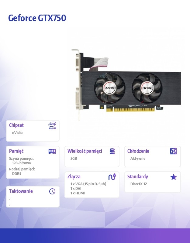 Karta graficzna - Geforce GTX750 2GB GDDR5 128Bit DVI HDMI VGA Single Fan