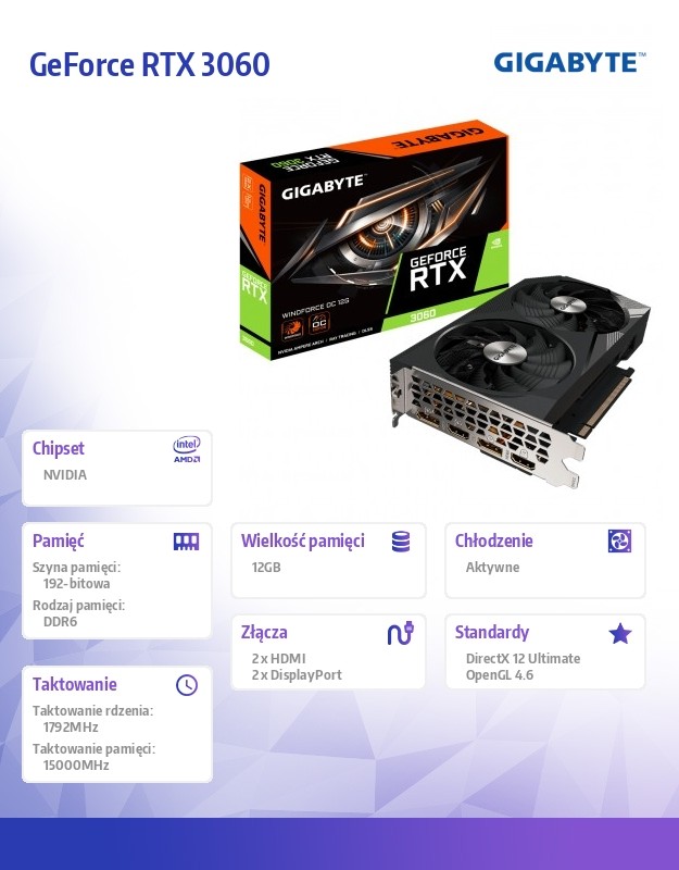 Karta graficzna GeForce RTX 3060 Windforce OC 2.0 12GB GDDR6 192bit