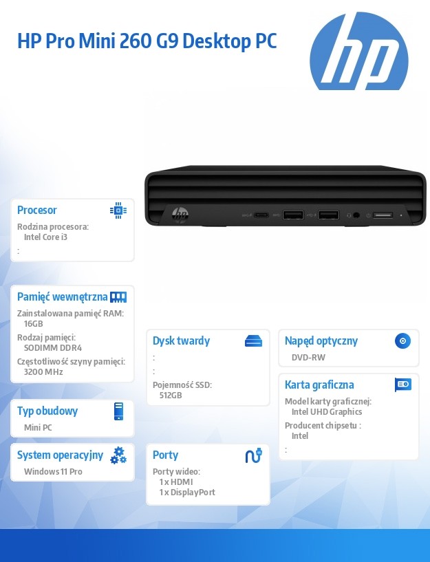 Komputer 260 G9 Mini i3-1315U/512GB/16GB/W11P 935Y4EA