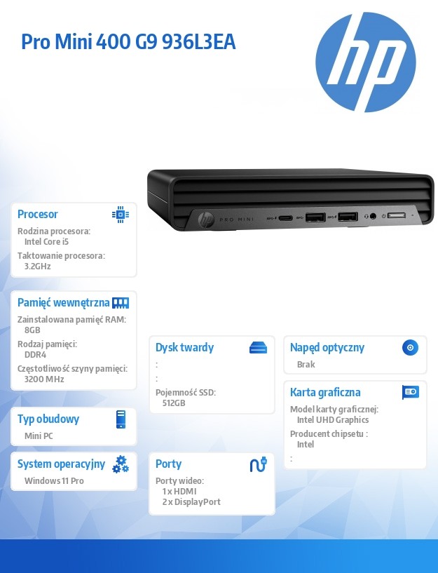 Komputer 400Mini G9Ri5-13500T 8GB/512GB/W11P 936L3EA
