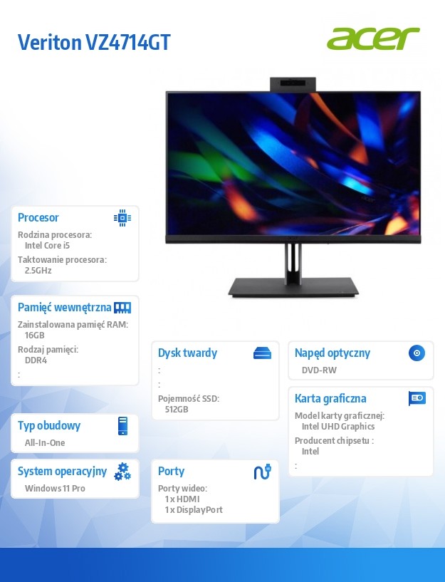 Komputer All-in-One Veriton VZ4714GT i5-13400/16GB/512GB/W11P