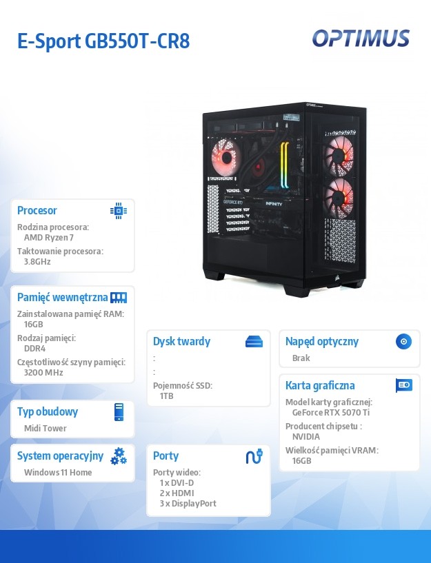 Komputer E-Sport GB550T-CR8 Ryzen 7 5800X/16GB/1TB/RTX 5060 Ti 16GB/W11H