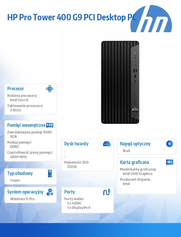 Komputer stacjonarny HP Pro Tower 400 G9 PCI