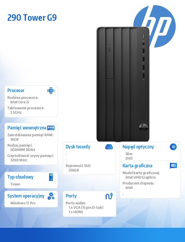 Komputer stacjonarny 290 Tower G9 i5-13500 256GB/16GB/DVDR/W11P 936A7EA