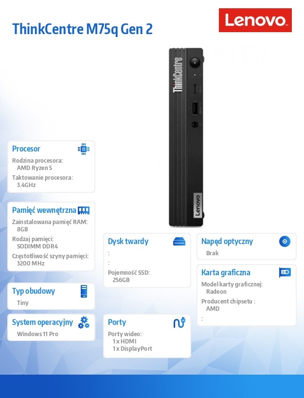 Komputer ThinkCentre M75q G2 Tiny 11JN006HPB W11Pro 5600GE/8GB/256GB/INT/3YRS OS