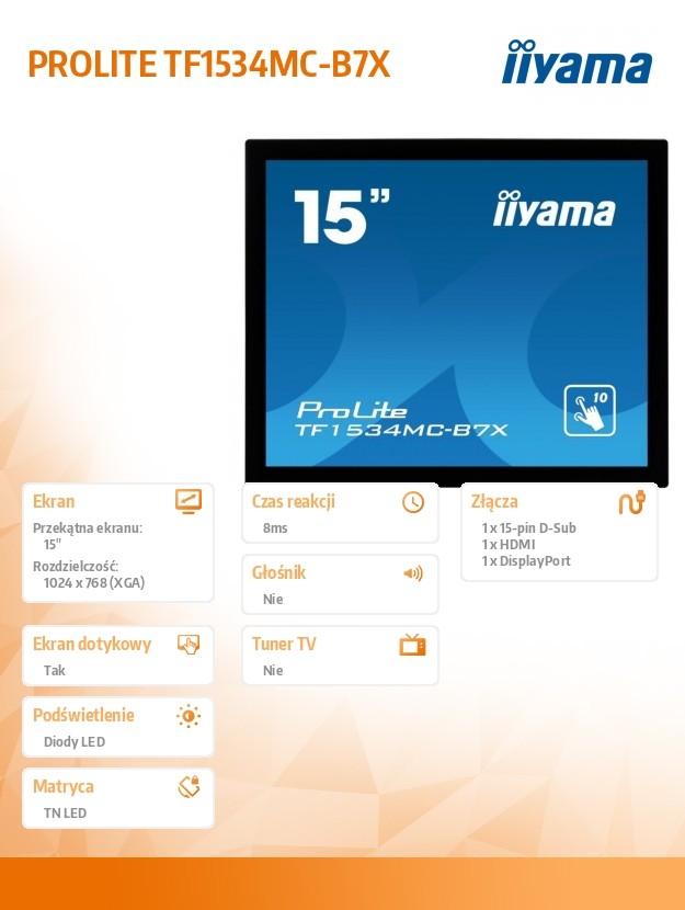 Monitor 15 cali TF1534MC-B7X TN,10 punktów dotykowych, HDMI, DP, 4:3, P65, 7H, USB