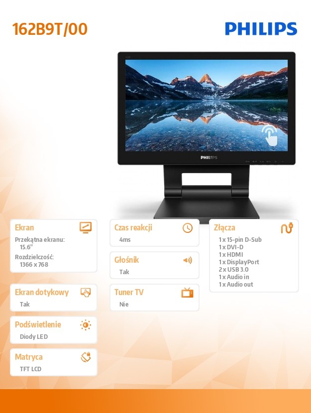 Monitor 162B9T 15.6 cali LED Touch DVI HDMI DP
