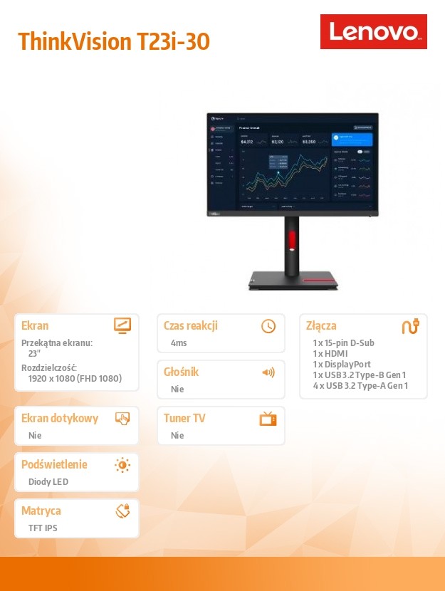 Monitor 23.0 ThinkVision T23i-30 WLED LCD 63B2MAT6EU